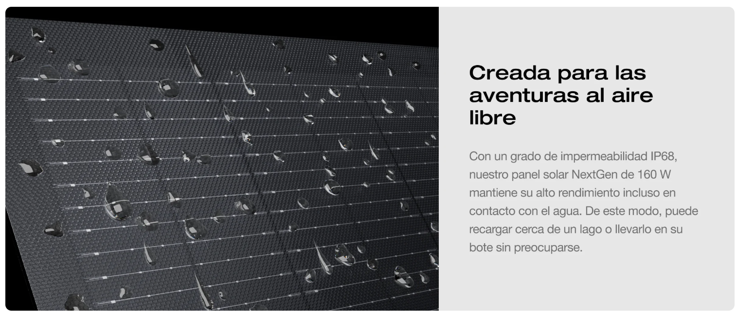 Alta eficiencia de carga: Con 160 W de potencia, maximiza la captación solar gracias a su tecnología avanzada, asegurando una carga rápida y confiable.