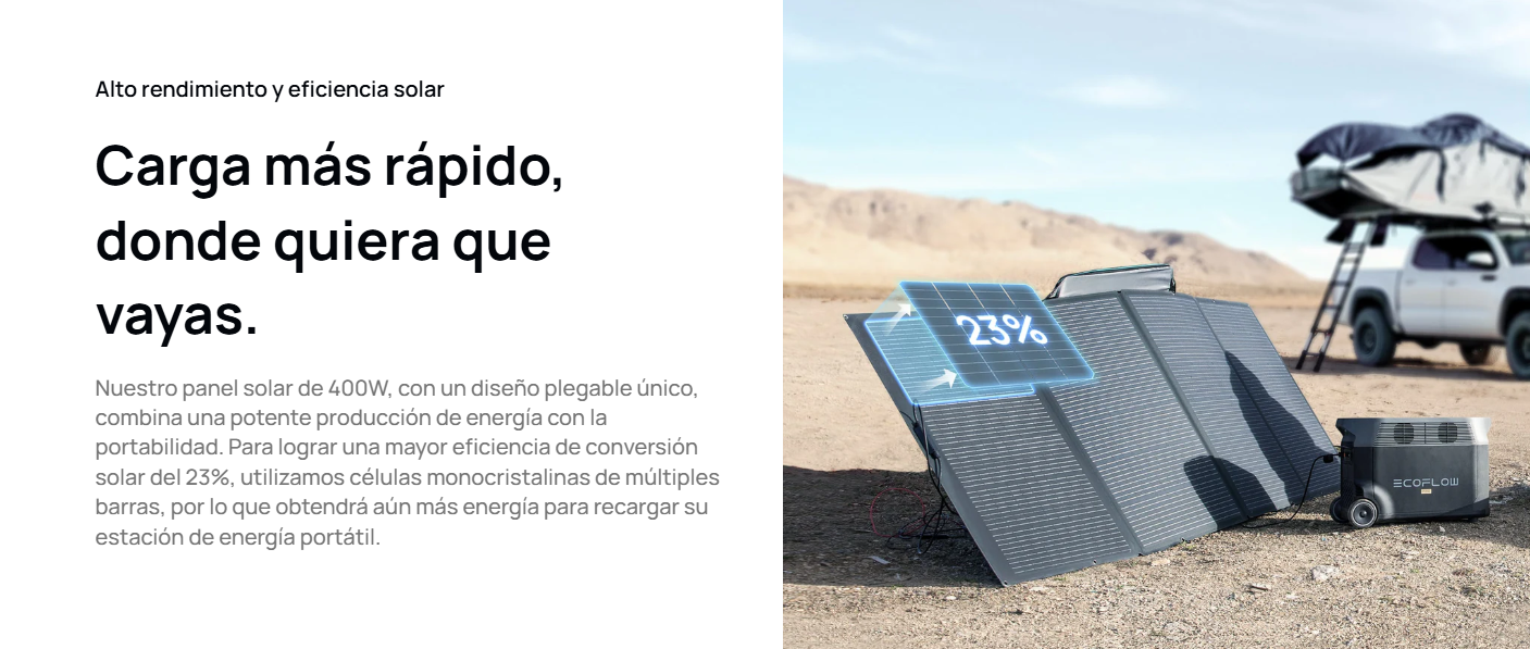 El Panel Solar Portátil EcoFlow de 400W es la solución definitiva para quienes buscan una fuente de energía limpia, eficiente y fácil de transportar. Ideal para actividades al aire libre, emergencias o para complementar tu sistema energético en Chile, este panel solar te ofrece rendimiento superior y máxima autonomía.
